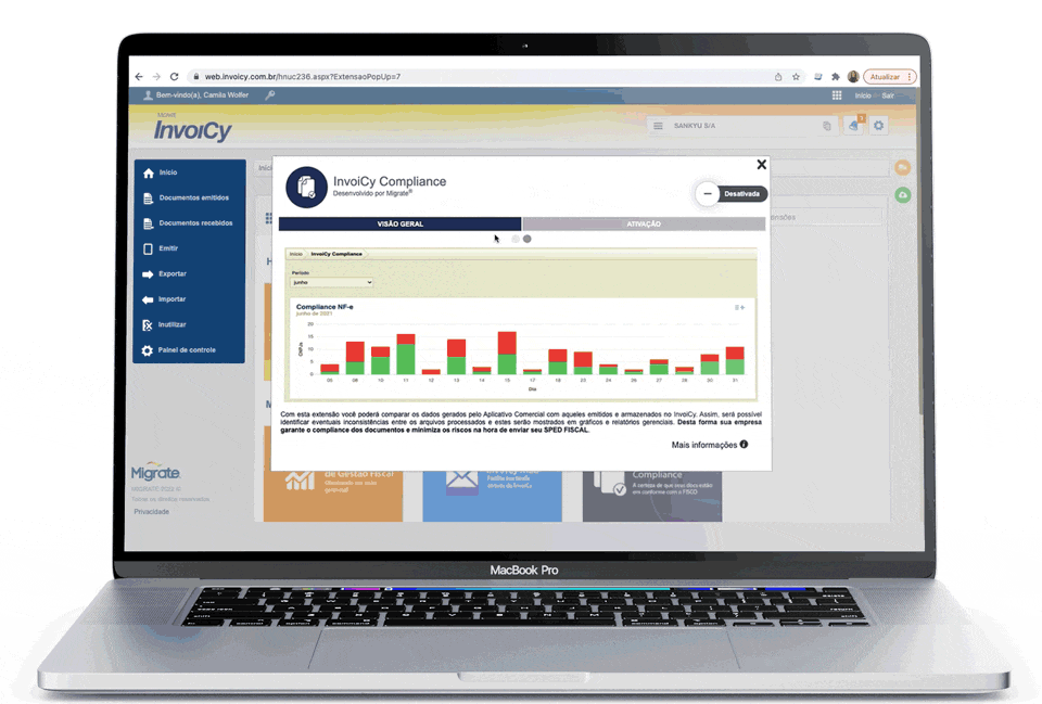 O InvoiCy Compliance Fiscal elimina burocracias e reduz custos, mantendo sua empresa 100% em conformidade com a legislação. Ao automatizar a conferência dos documentos, a solução previne inconsistências, multas e retrabalho, garantindo uma gestão fiscal segura, eficiente e livre de riscos perante o Fisco.