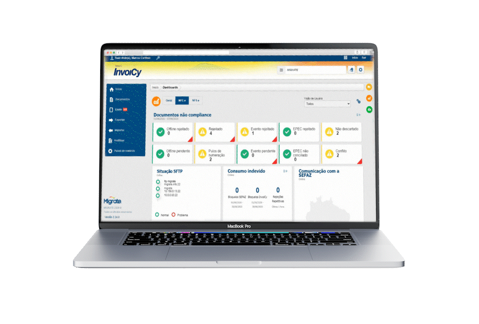 O InvoiCy Dashboard é a solução definitiva para otimizar a gestão de NFS-e e NFC-e, permitindo o monitoramento em tempo real de documentos fiscais, certificações digitais e comunicação com órgãos reguladores. Com uma visão unificada, a ferramenta elimina riscos e retrabalho, assegurando muito mais controle, segurança e eficiência para a sua operação fiscal.
